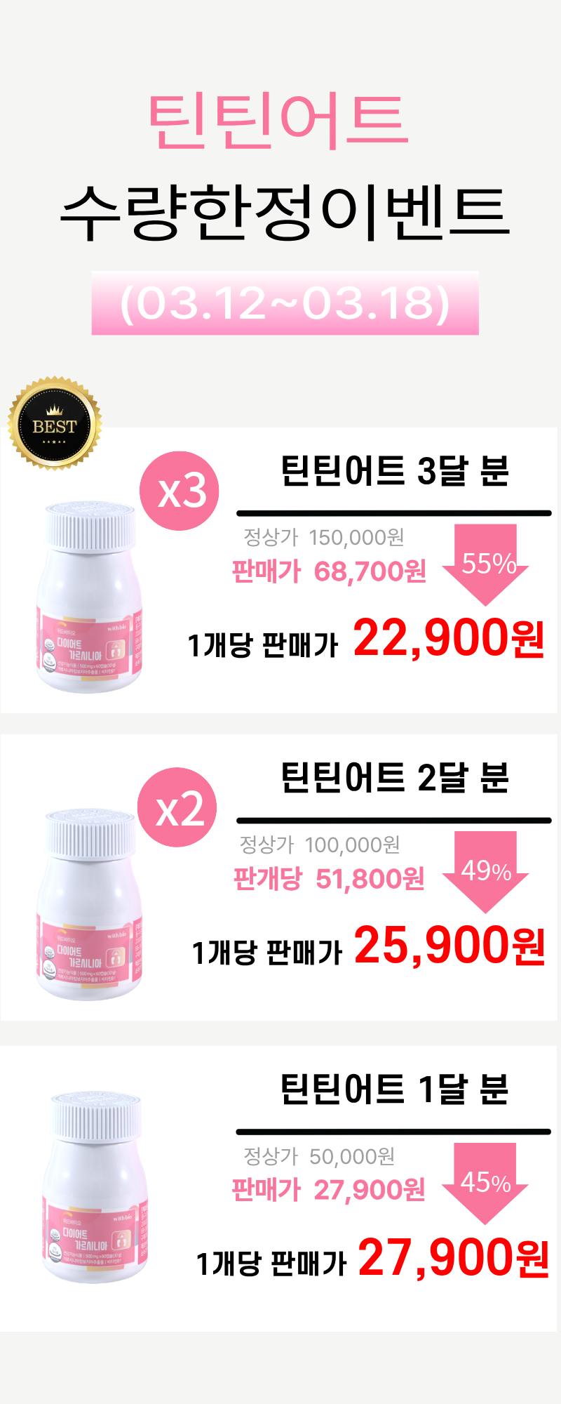 ✔︎ 10차 매진 감사합니다, 8월 22일 11차 출고 확정!✔︎ 10대 다이어트 설문 부분 1위(I사)✔︎ 고객님 후기인증 2000개+✔︎ 식약처 다이어트 인증 성분 첨가✔︎ 내장지방 감소가 입증된 가르시니아 고함량 함유✔︎ 지방을 분해해주는 녹차추출분말 함유✔︎ 살 안찌는 체질로 만들어주는 진짜👍