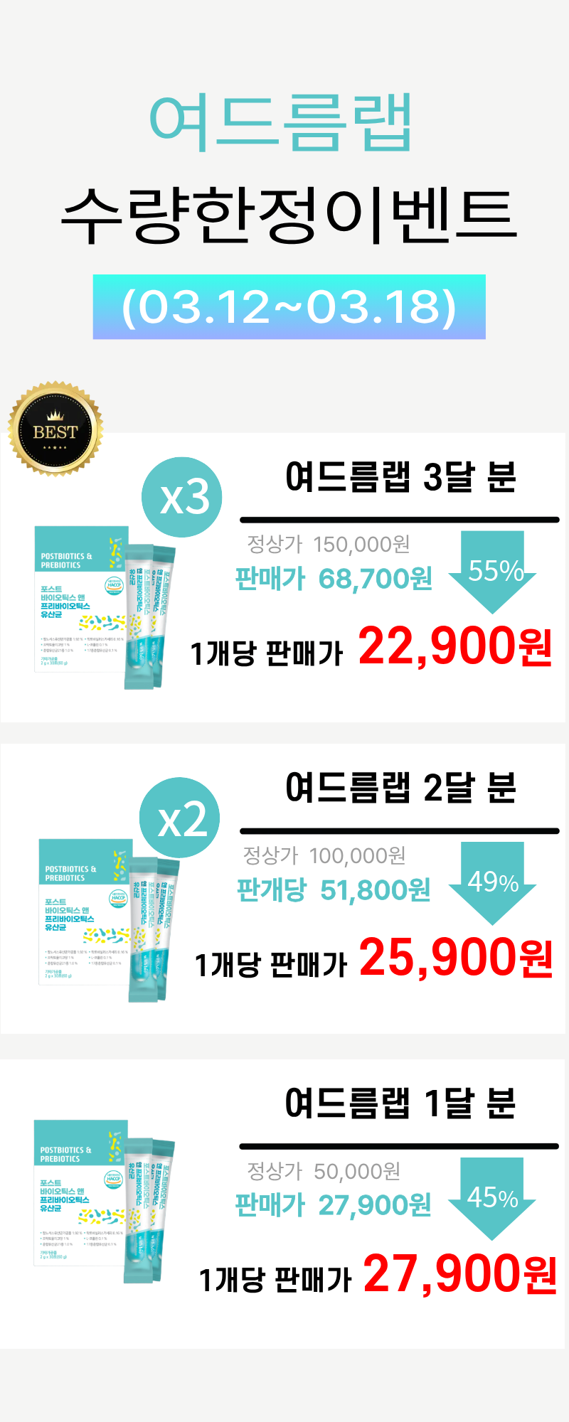 ✔︎ 8차 매진 감사합니다, 9월 13일 9차 출고 확정!✔︎ 10대 유산균 설문 부분 1위(I사)✔︎ 고객님 후기인증 1000개+✔︎ 피지·여드름균부터 원인 케어✔︎ 피지조절 유산균인 L. reuteri 함유 ✔︎ 여드름균을 줄여주는 L. plantarum 함유✔︎ 원인부터 해결하는 진짜